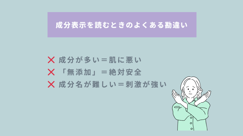 → 実は逆で、保湿・安定・防腐など肌を守るために必要な成分も多いです。